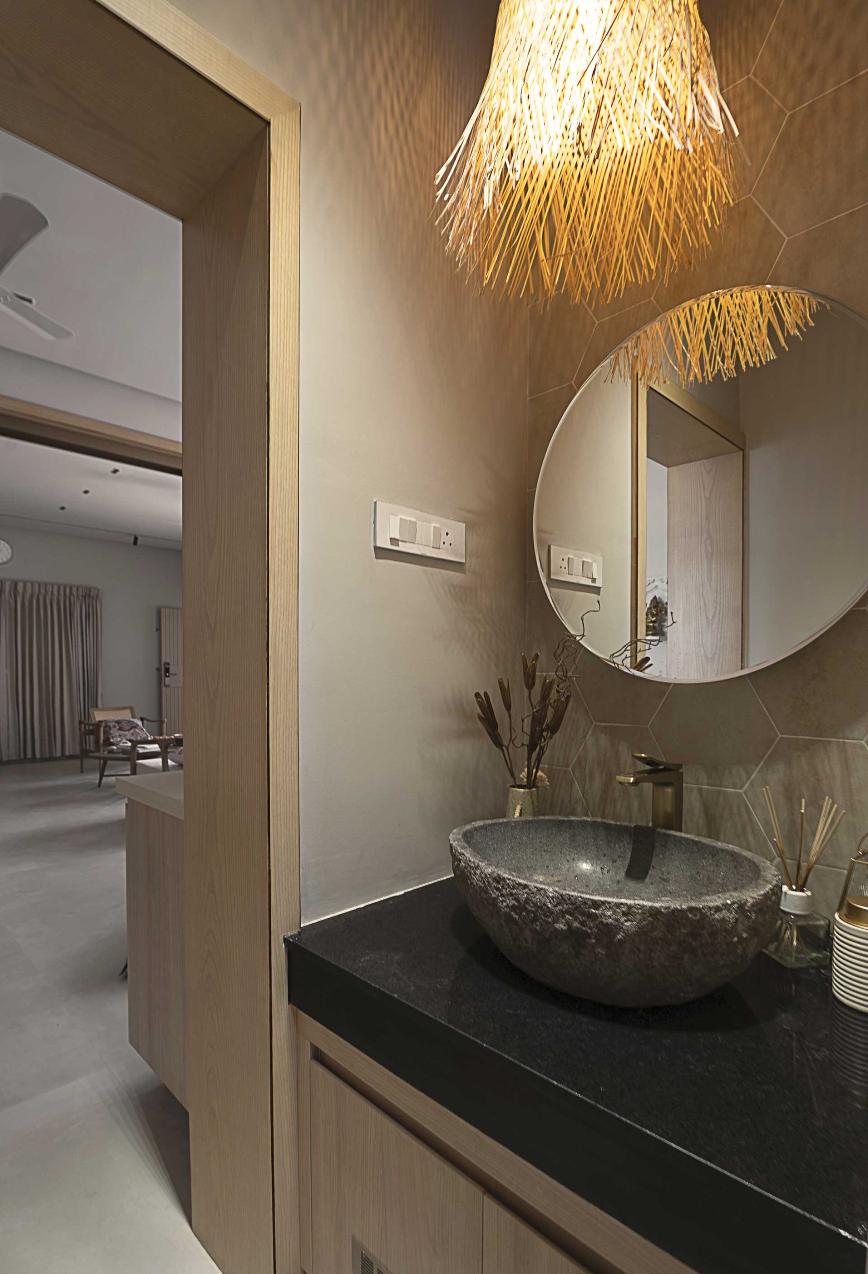 House of Sunlit Drapes is a serene residence shaped by light and softness. Sheer curtains become more than functional elements—they act as filters for the day, gently diffusing sunlight and casting ever-changing shadows across the interiors. The home unfolds in a palette of warm neutrals, natural textures, and restrained detailing, allowing light to remain the true protagonist.