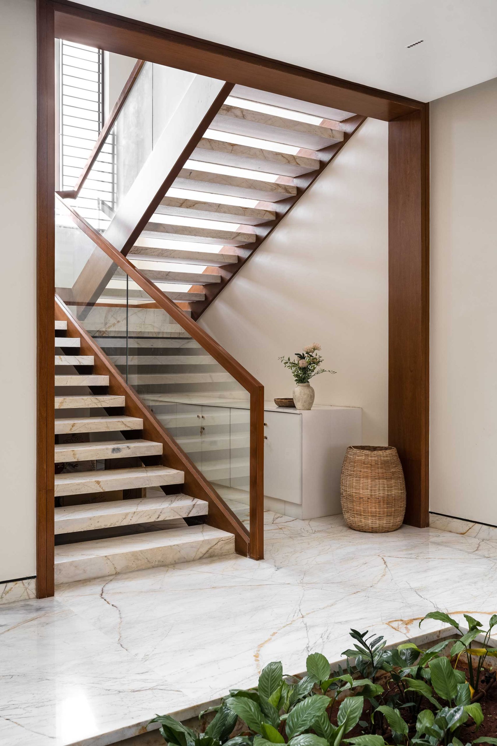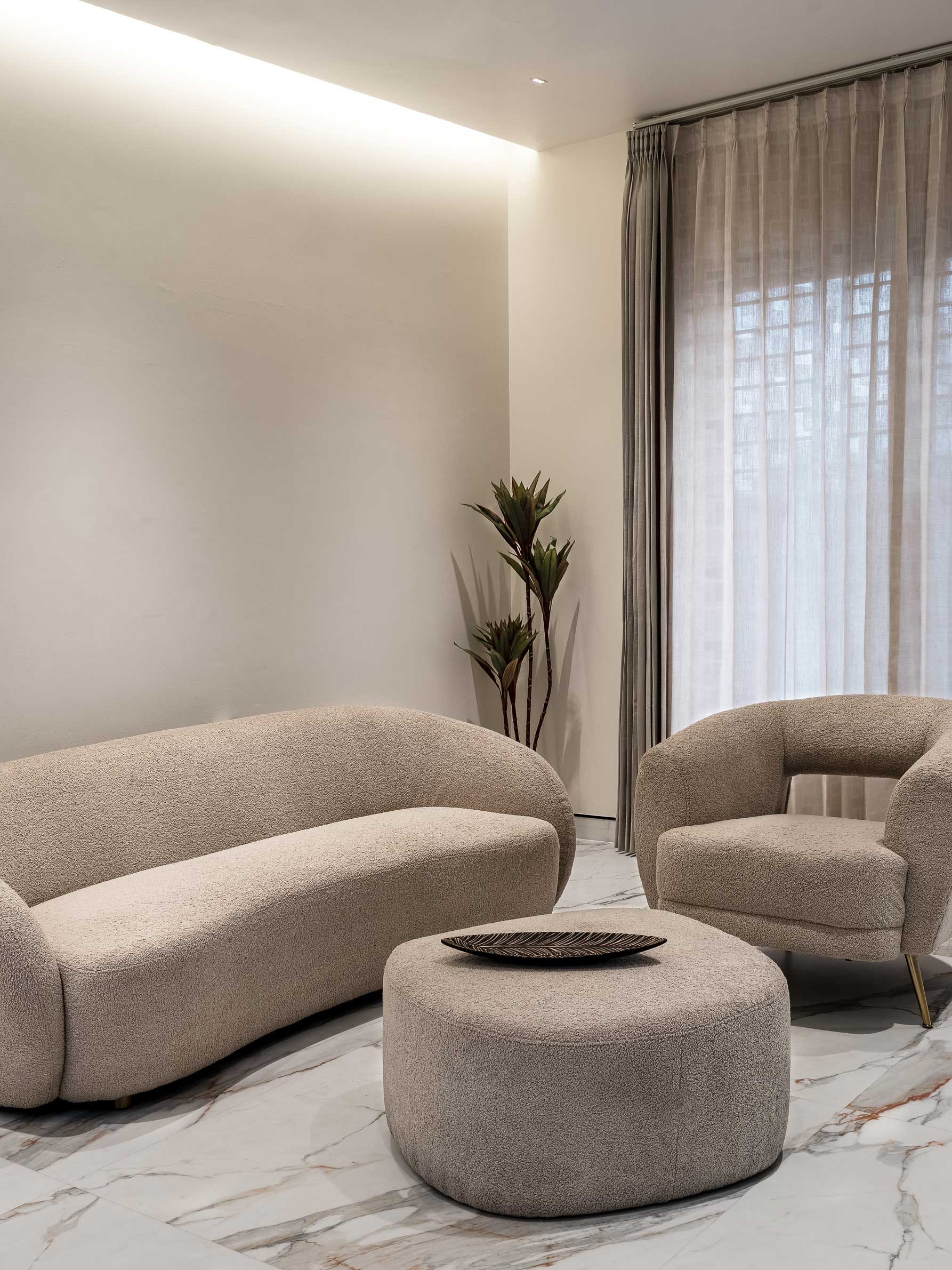 Layered Living is an exploration of subtle contrasts—warm wood against soft whites, tactile upholstery paired with polished stone, and openness balanced with intimate detailing. The home unfolds through carefully curated layers, creating a calm yet elevated living experience rooted in modern sensibilities.